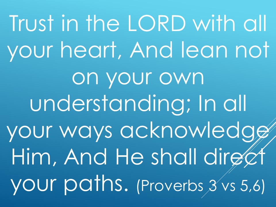 Proverbs 3:5-6 Posted bysladeevangelicalchurchAug 31, 2022Aug 4, 2022Posted inBible verses Share this: Click to share on X (Opens in new window) X Click to share on Facebook (Opens in new window) Facebook Like Loading... Related